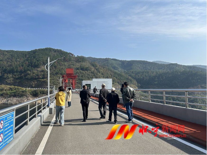 座談會后,在水庫管理所工作人員的引導下,大家實地參觀了下滸山水庫。漫步在壩頂道路上,工作人員詳細介紹水庫的建設歷程、綜合效益,以及水庫在區域經濟社會發展中的重要作用。秋日的下滸山水庫,碧波蕩漾、群山環繞,大家紛紛拍照留念,切身感受新時代水利建設取得的輝煌成就與生態之美。