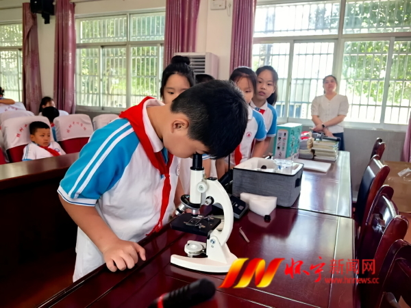 為了讓孩子們更深入理解光學(xué)原理,志愿者現(xiàn)場拆解了顯微鏡的光學(xué)系統(tǒng),演示光線如何通過物鏡和目鏡層層放大成像。孩子們操作顯微鏡,觀察洋蔥表皮細(xì)胞和花粉樣本。“哇!洋蔥細(xì)胞像排列整齊的小房間!”“花粉的形狀好像小刺球!”驚嘆聲此起彼伏。
