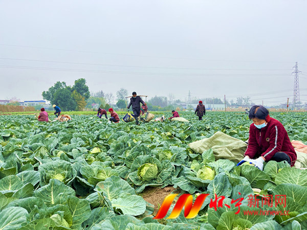 12月9日,在石牌鎮同發村的蔬菜基地里,200余畝包心菜迎來大豐收,每畝收成4000余公斤,帶動周邊百余村民家門口就業增收。檀志揚 涂成志 攝