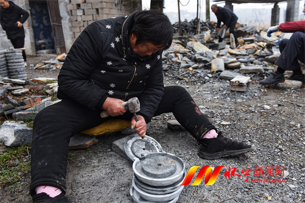 春節過后,在涼亭鄉代店村石磨加工廠內,工人們正忙碌地生產著節后訂單,經過鉆孔、打磨、鑿刻花紋等工序,一個個造型精巧的石磨便成型了。