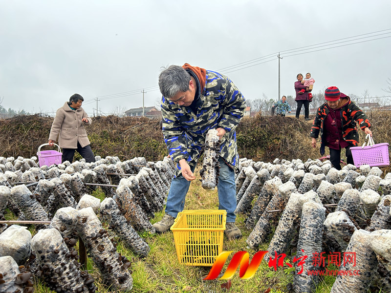 在江鎮鎮于山村木耳基地里,休眠了一整個冬季的黑木耳快速生長,迎來第二輪采摘季。工人們來回穿梭于一排排菌棒之間,采摘新鮮木耳,即采即賣。