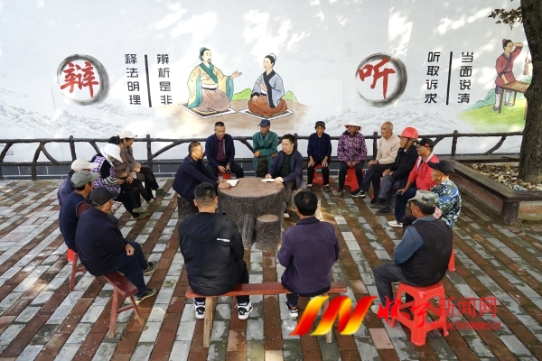 10月20日,在高河鎮和平村“六尺巷”議事小廣場,鎮村干部和群眾圍坐在一起,大家各抒己見商議和美鄉村長效管護措施。我縣以“新時代六尺巷工作法”為指引,搭建黨群干群面對面交流溝通平臺,著力打通鄉村治理“最后一公里”,為推進鄉村振興注入強勁動能。檀志揚 劉曉勇 攝