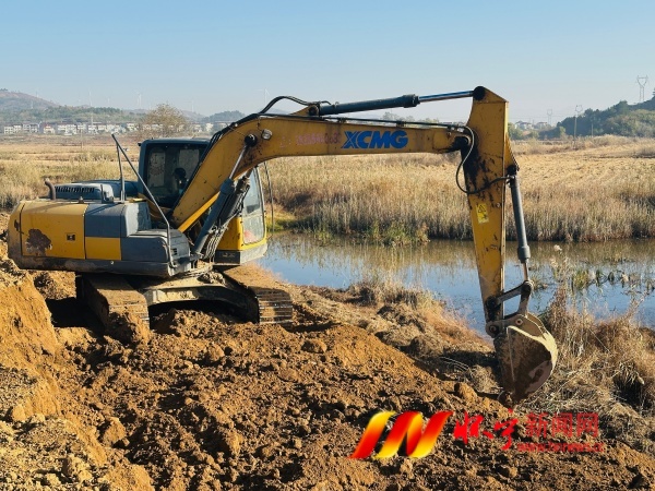 11月26日,江鎮(zhèn)鎮(zhèn)盤石村塔塞圩,挖掘機(jī)在加固修復(fù)堤壩。盤石村結(jié)合項(xiàng)目資金,投入近100萬元對(duì)全長2公里的塔塞圩進(jìn)行土方加固、拓寬,確保千畝良田旱澇保收。檀志揚(yáng) 劉慶生 攝